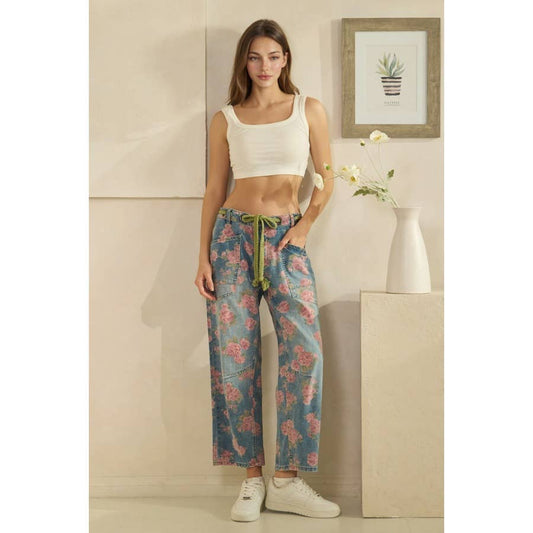 Oli & Hali washed floral print barrel jeans