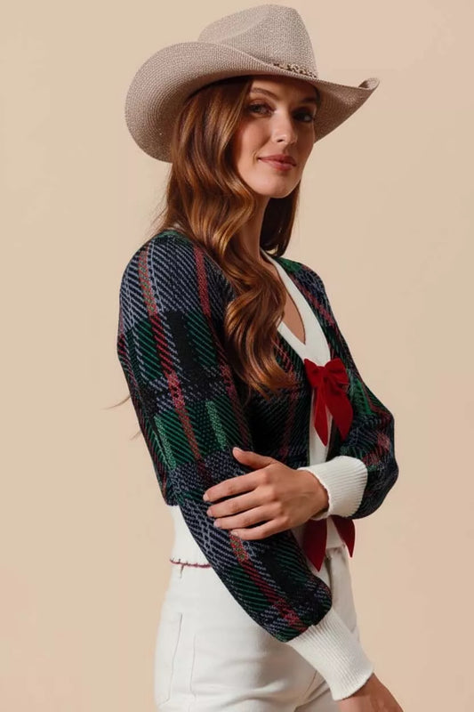 ONLINE EXCLUSIVE SO ME Velvet Bow Ribbon Embellished Christmas Cardigan