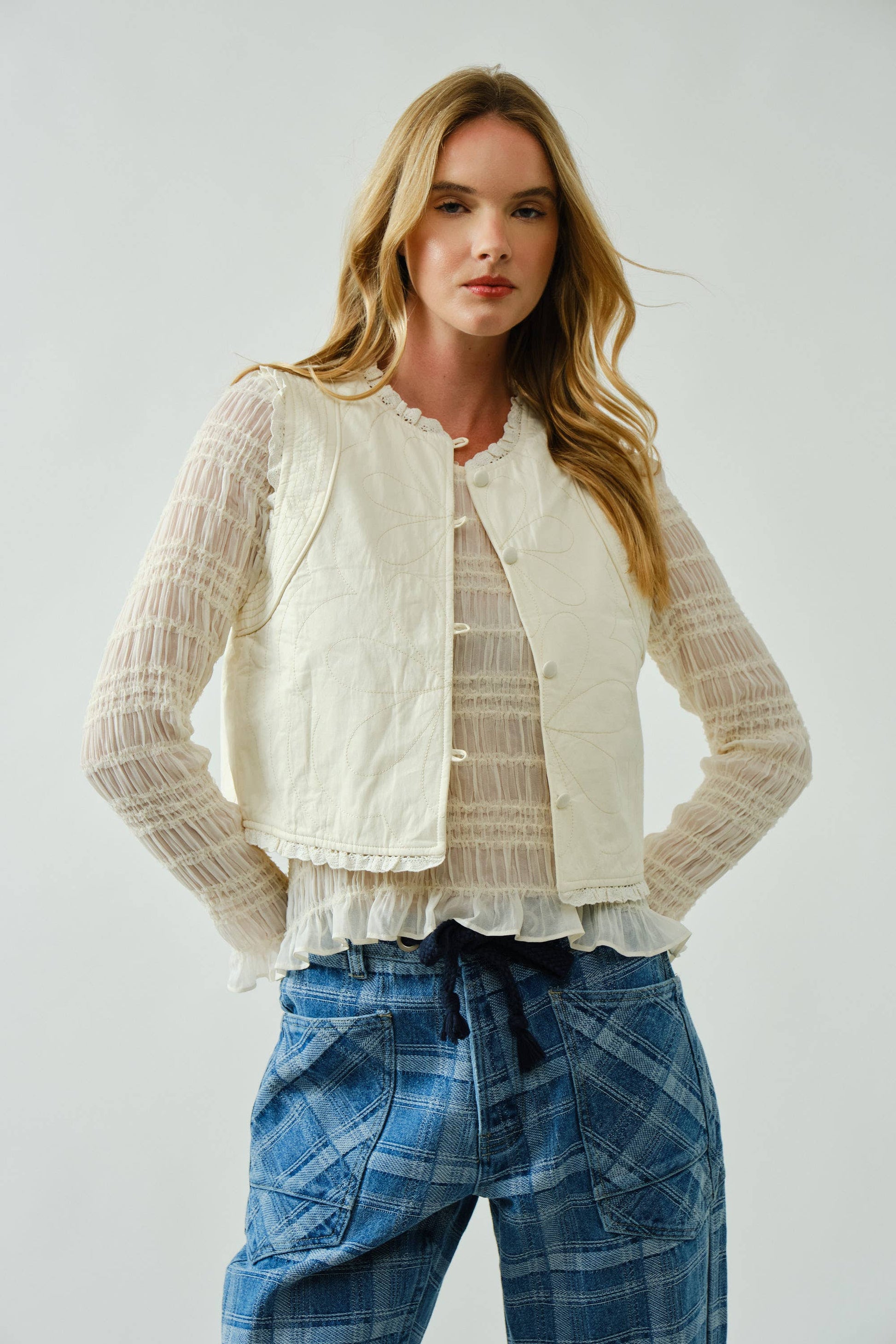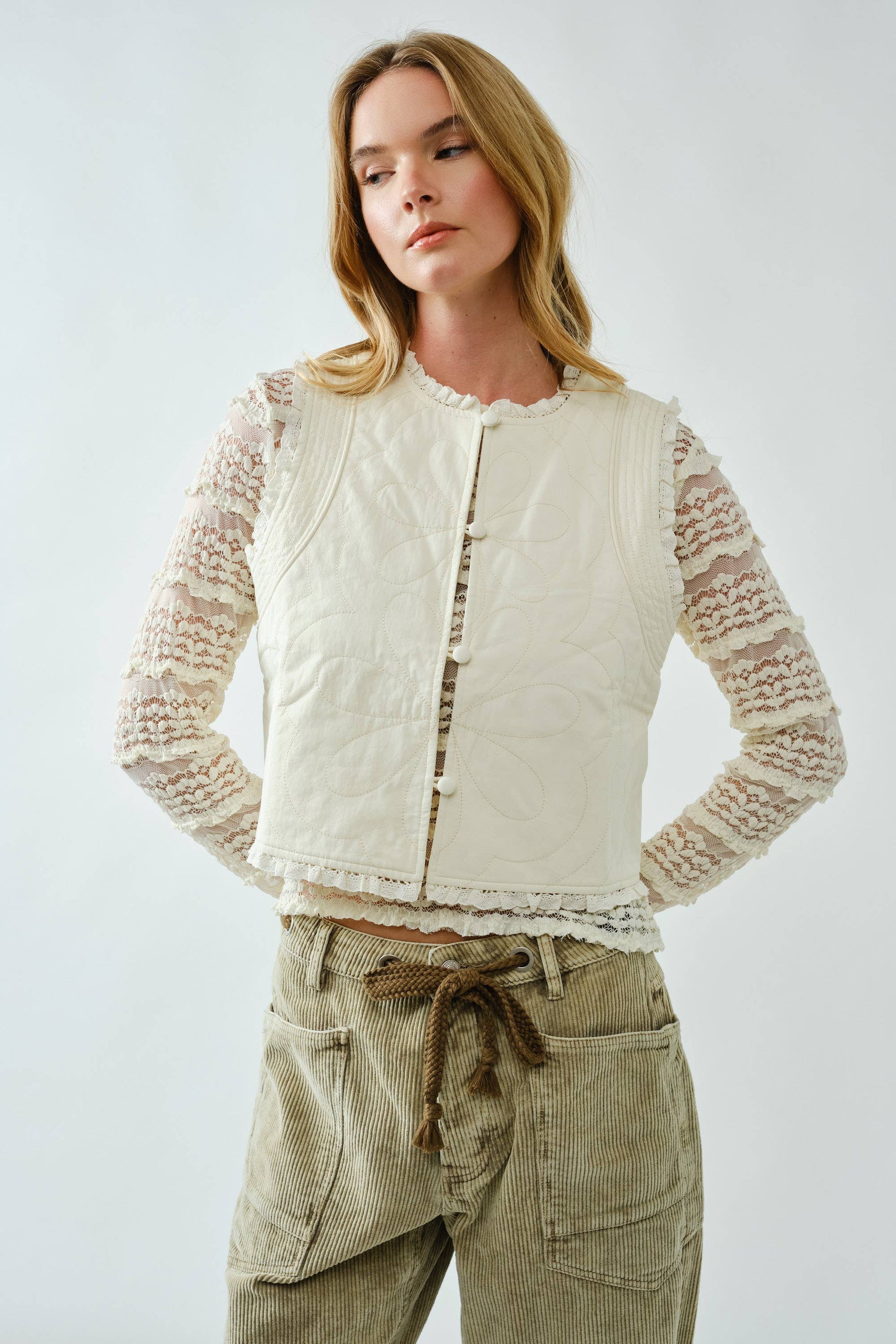 LOVELY COTTON QUILTED RUFFLE VEST