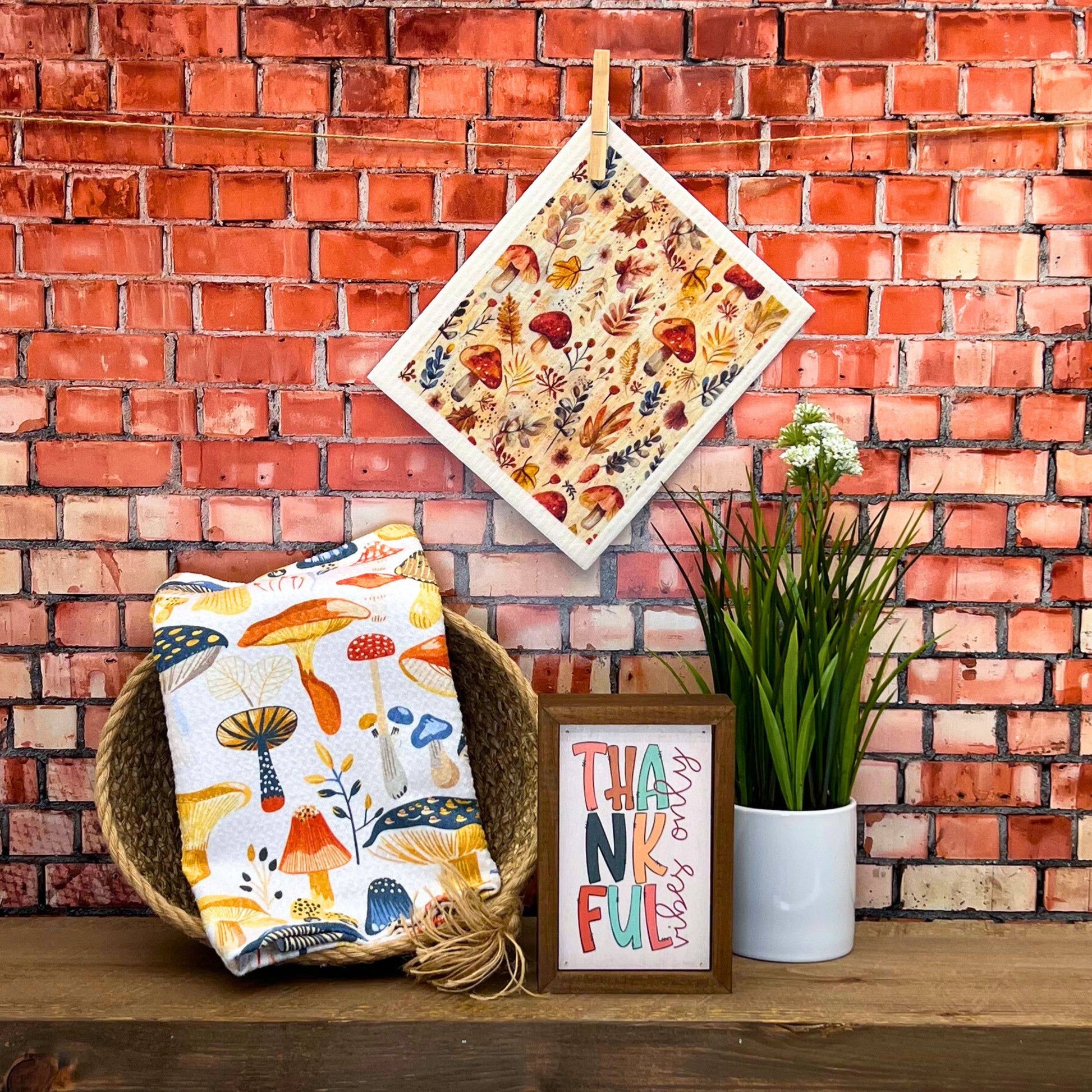 Fall Harvest Mushrooms Swedish Dishcloth