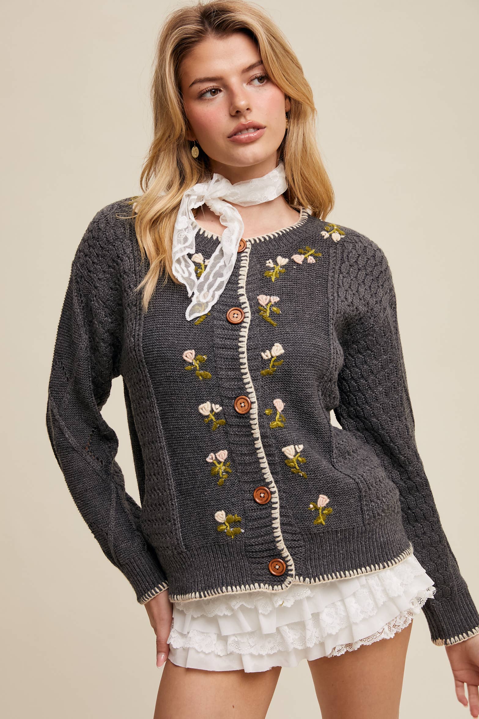 Nova Floral Embroidered Button-Up Cardigan/sweater top