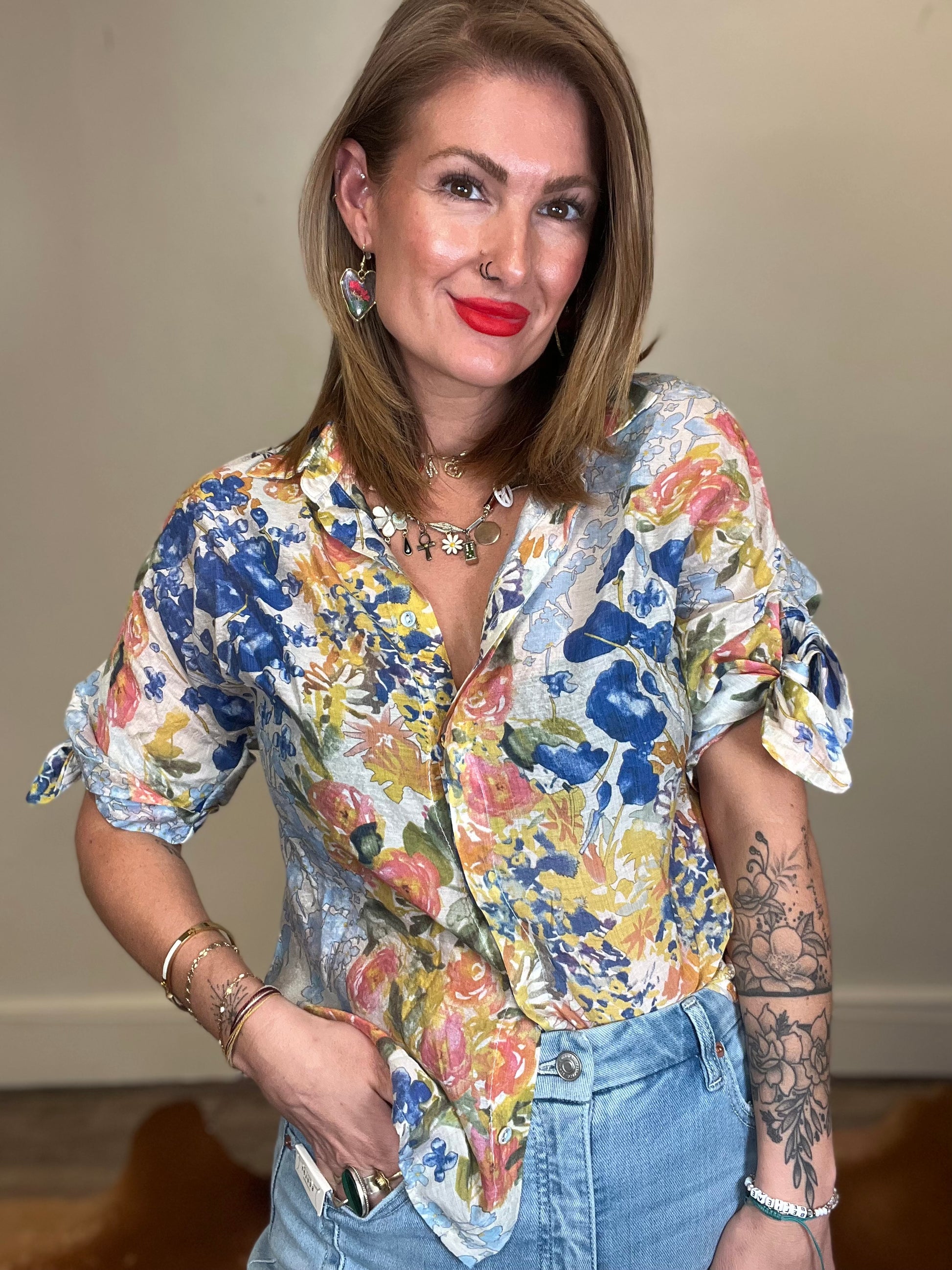 Lightweight and breezy, this collared top features cuffed short sleeves for a touch of elegance. Perfect for any occasion, dress it up or down with ease.