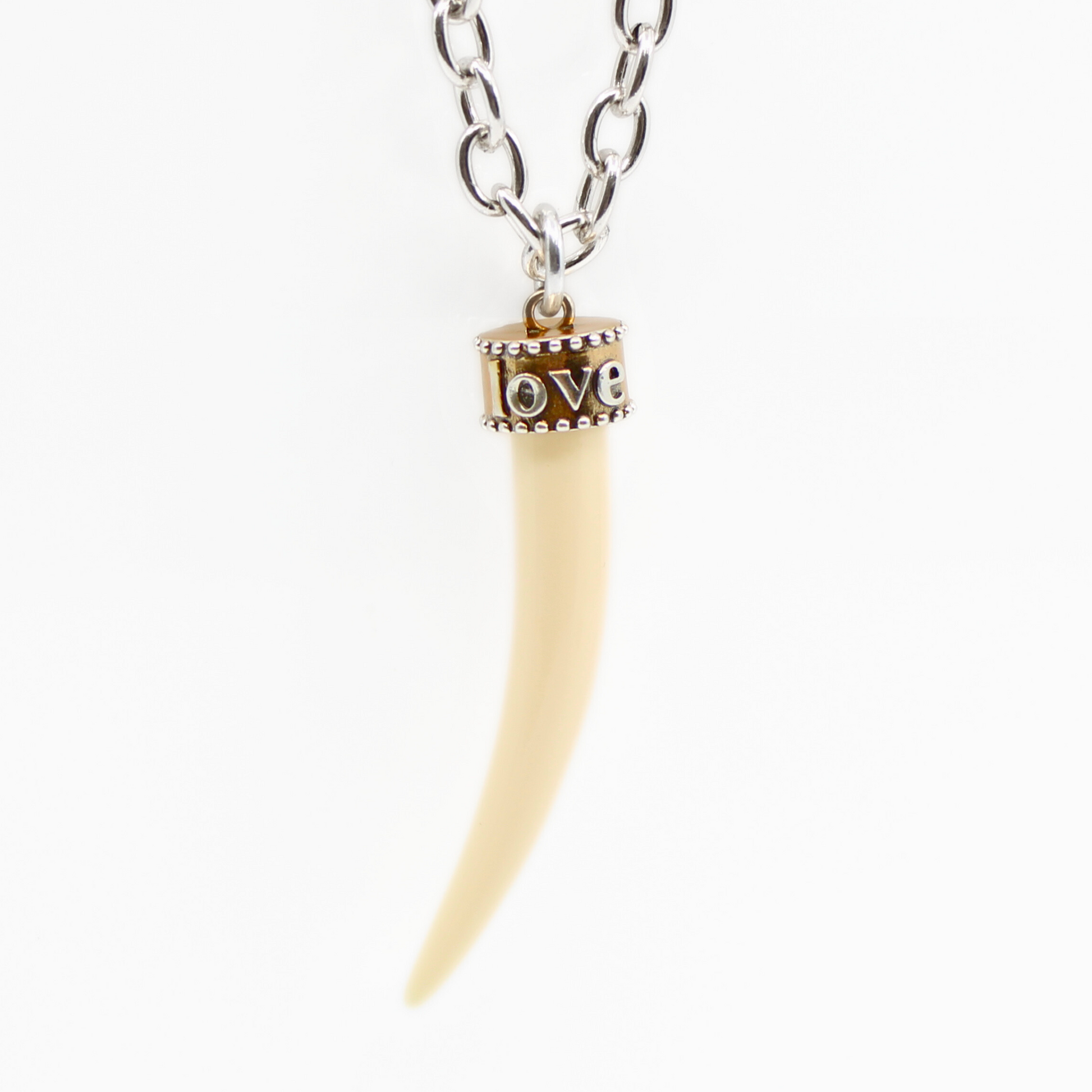 Make a statement with our Love Tusk Essential Necklace, featuring a striking synthetic polymer tusk pendant in a chic mixed metal design.
