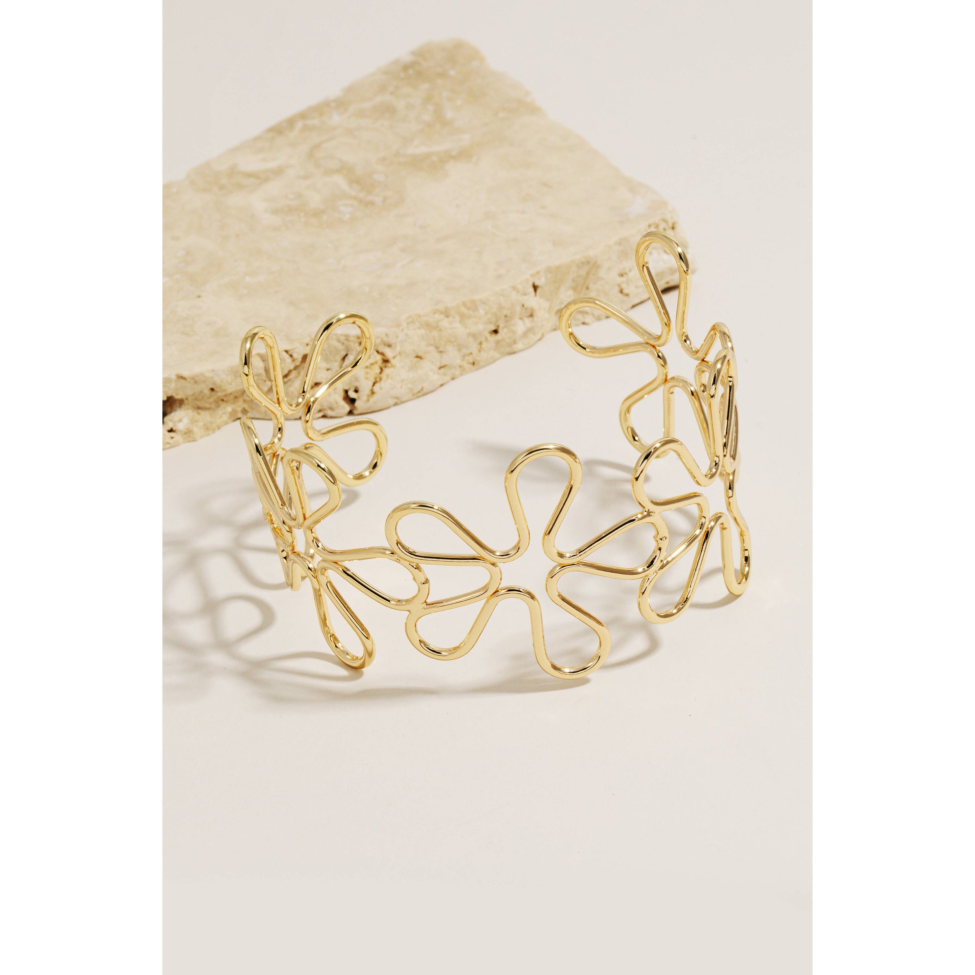 Metallic Wire Flower Cuff Bracelet