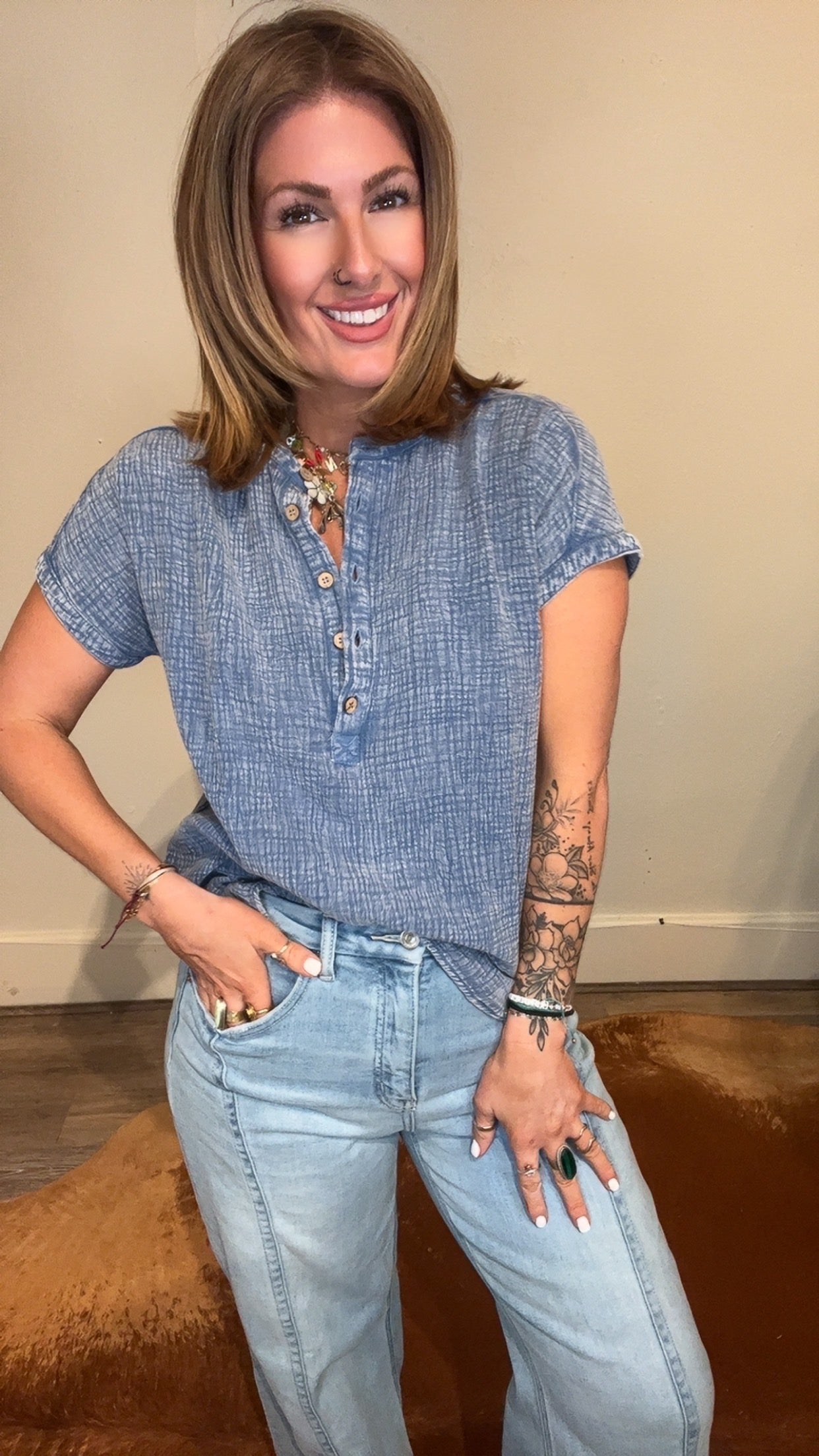 Be effortlessly chic in our Carly Henley top!